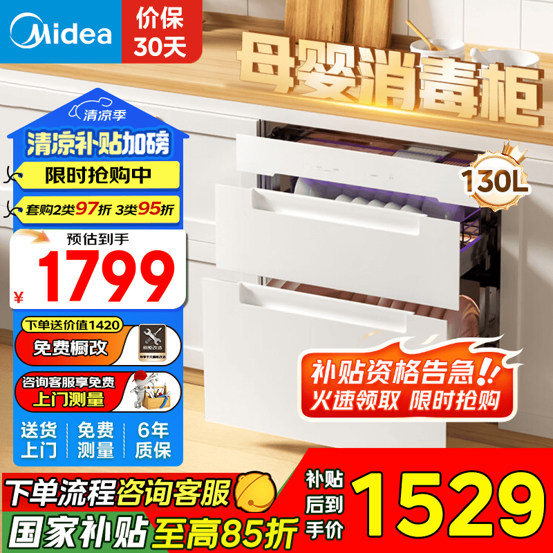 美的消毒柜嵌入式130HQ3-W白色大容量高杀菌率
